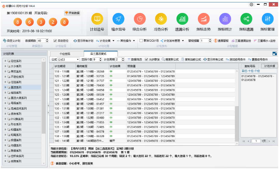 彩票GG计划客户端是一款彩票软件,告别传统公式化的彩票软件,完美融合了概率论、数理统计、软件工程、投资学等科学理论,软件内置:计划追号、计 划验证、缩水工具、图表分析、指 标分析、指标统计、冷热分析、遗 漏分析、公式搜索、功能强大!