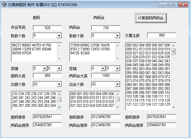 彩神吧论坛分享:通过输入当期开奖号码,运算N组胆码,两码合,可以自定义胆码个数,大底支持容错,2组不同条件大底交集后出计划!