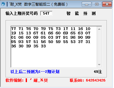 彩神吧官网分享:通过输入时时彩三星开奖号码,自动预测时时彩后二计划,采用固定公式出号,有周期!