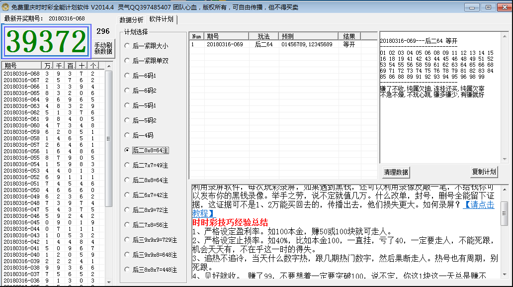 彩神吧官方分享:灵气时时彩全能计划软件,包含了多个玩法,准确率待验证!