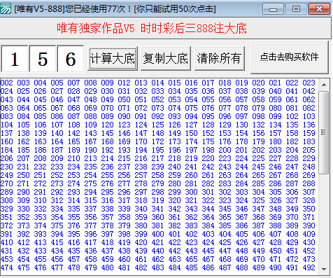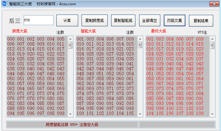 时时彩三星850+大底,采用公式运算,准确率还不错,可以做三星任选10位置的10个大底,可以拿来和其他三星大底交集,需要大底的会员们,可以先拿来验证准确率,觉得可以再用,没有永久稳定的大底,任何软件方法,都是先验证,后实践!