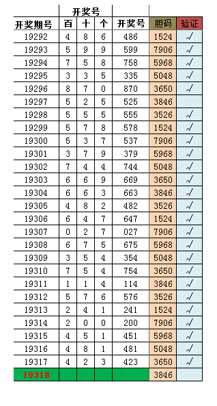 此表为上一版表的左移版本,准确率颇高。省事方便,4码出1-3都开出来过。