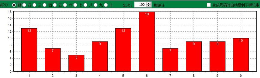 上图是号码出次统计图(从中可以了解到任一位置N期内每个号码开出的次数)